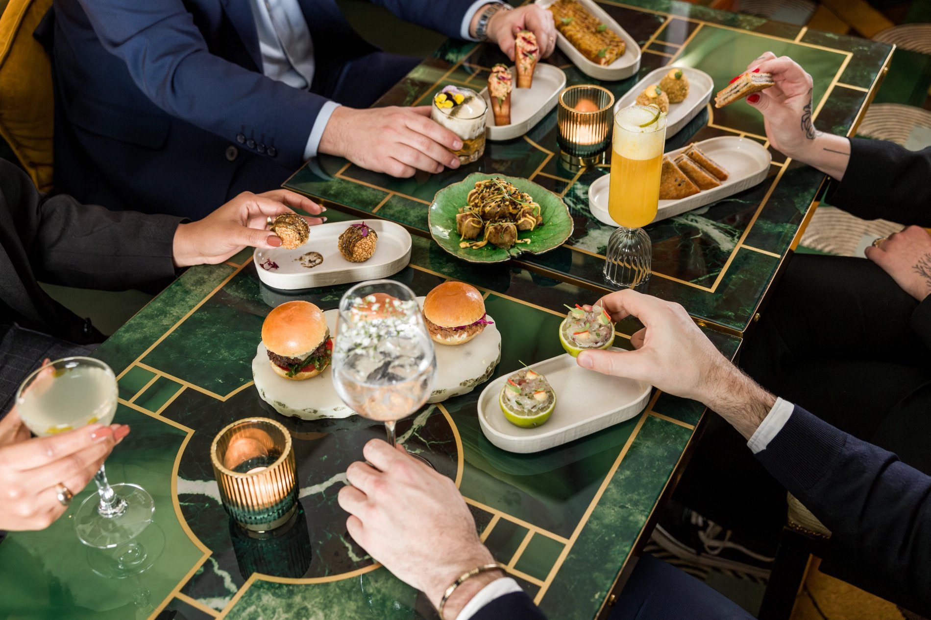 Pour accompagner ces boissons d'exception, une sélection de mets raffinés, mettant en valeur des produits de saison et des saveurs audacieuses, vous invite à un voyage gustatif unique dans l'esprit des Années 20.